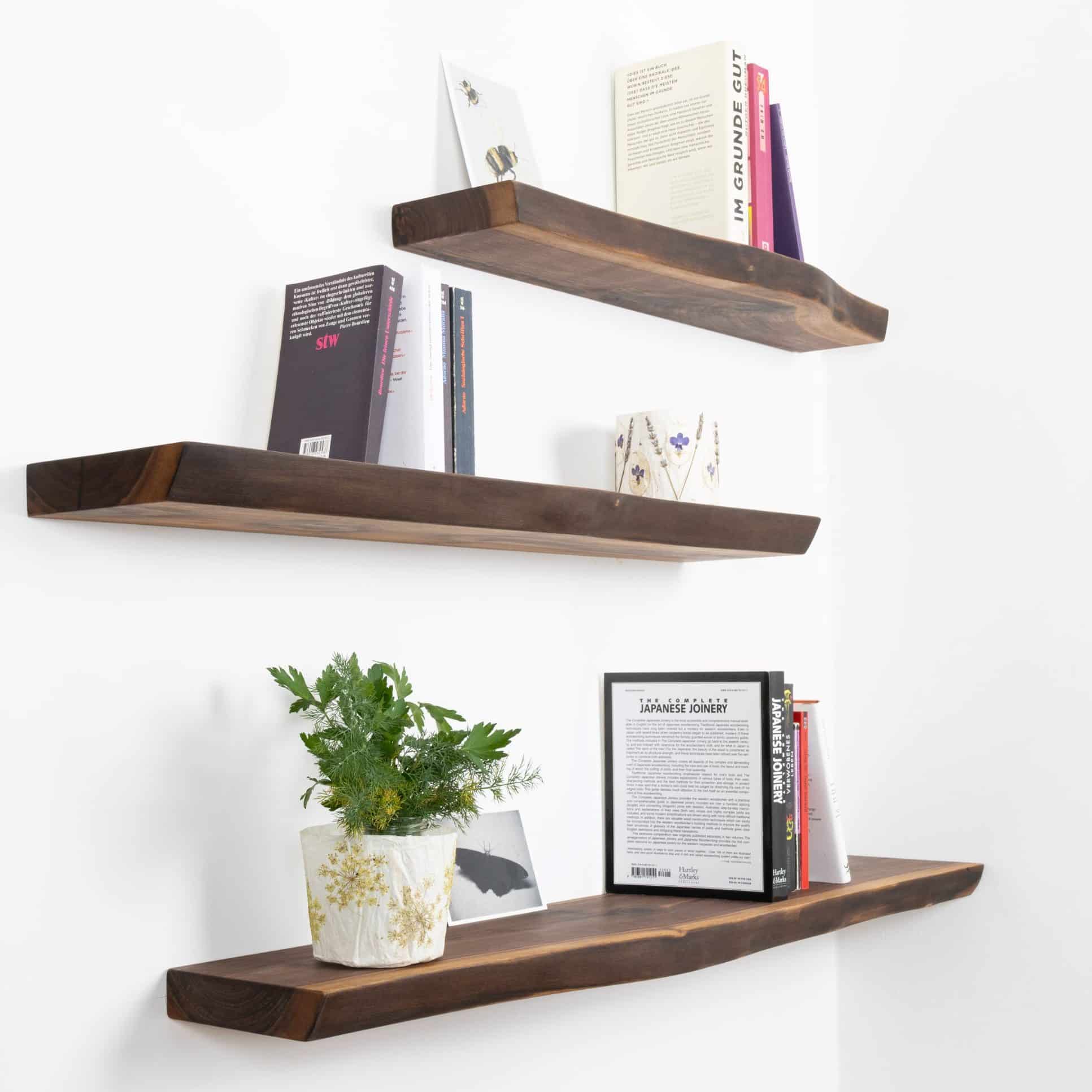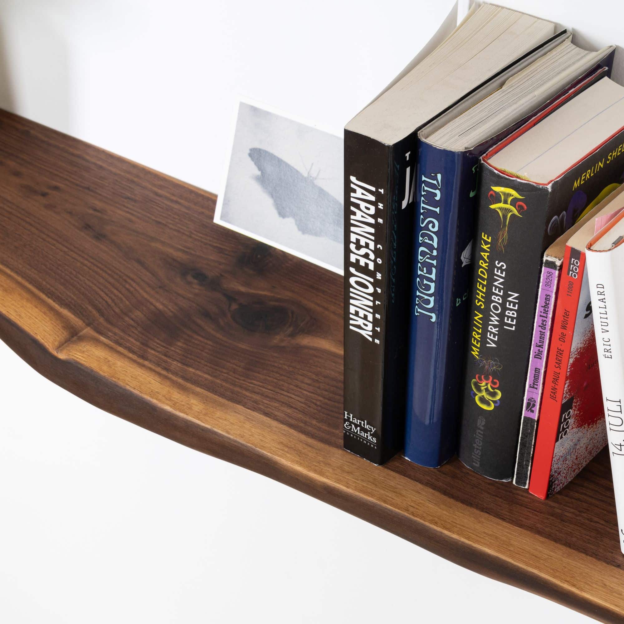 Zusätzlich zu dem Wandregal Nussbaum, fertigen wir die schwebenden Regale auch aus Eiche, Esche und Rüster (Ulme).